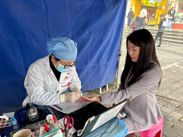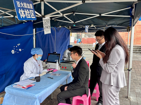 雖然天氣微涼,但活動現(xiàn)場暖意融融,“您之前獻(xiàn)過血嗎?最近有沒有感冒吃藥?”云南昆明血液中心醫(yī)護(hù)人員仔細(xì)核對獻(xiàn)血者信息,詳細(xì)詢問身體狀況。在醫(yī)護(hù)人員的耐心引導(dǎo)下,員工們有條不紊地完成登記、化驗、采血等流程。他們中有的是第一次獻(xiàn)血的“新兵”,有的則是連續(xù)多年獻(xiàn)血的“公益達(dá)人”。