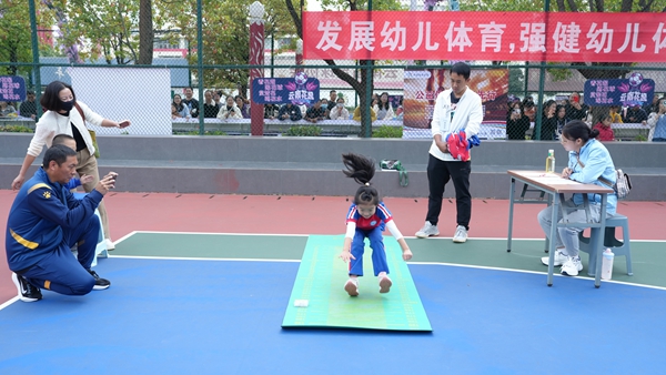 結(jié)合幼兒身心發(fā)展特點,運動會分設公辦園組與民辦園組,共設置5項團體項目與3項個人單項。其中團體項目涵蓋團體操(啦啦操、街舞、快樂器械操、籃球操)、三人籃球、小足球、體能綜合7項及幼兒跑酷,個人項目包含跳繩、立定跳遠、助跑摸高跳,所有項目均兼顧趣味性、協(xié)作性與體能鍛煉需求,實現(xiàn)對幼兒身心發(fā)展的全面促進。
