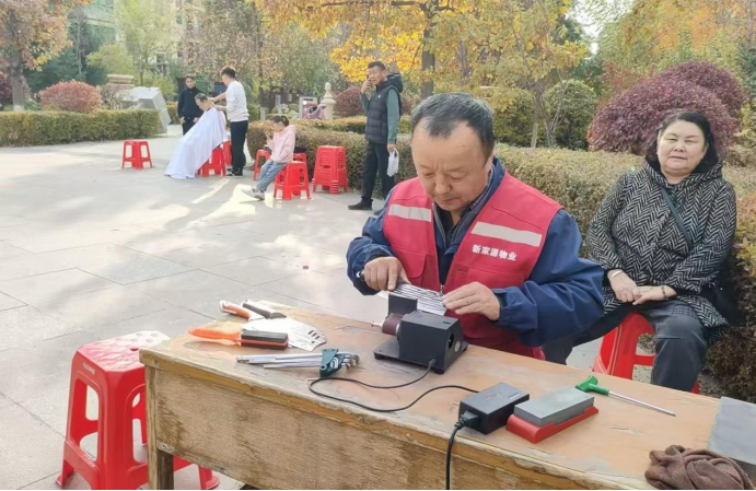 活動中,物業(yè)公司工作人員提前搭建好服務(wù)臺,社區(qū)志愿者有序引導(dǎo)居民排隊,現(xiàn)場秩序井然。磨刀區(qū)域,師傅支起砂輪,“滋滋”的打磨聲中,每一把鈍刀都被精心修復(fù)。