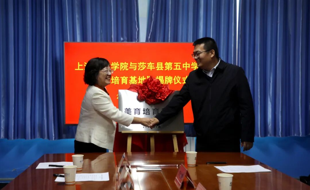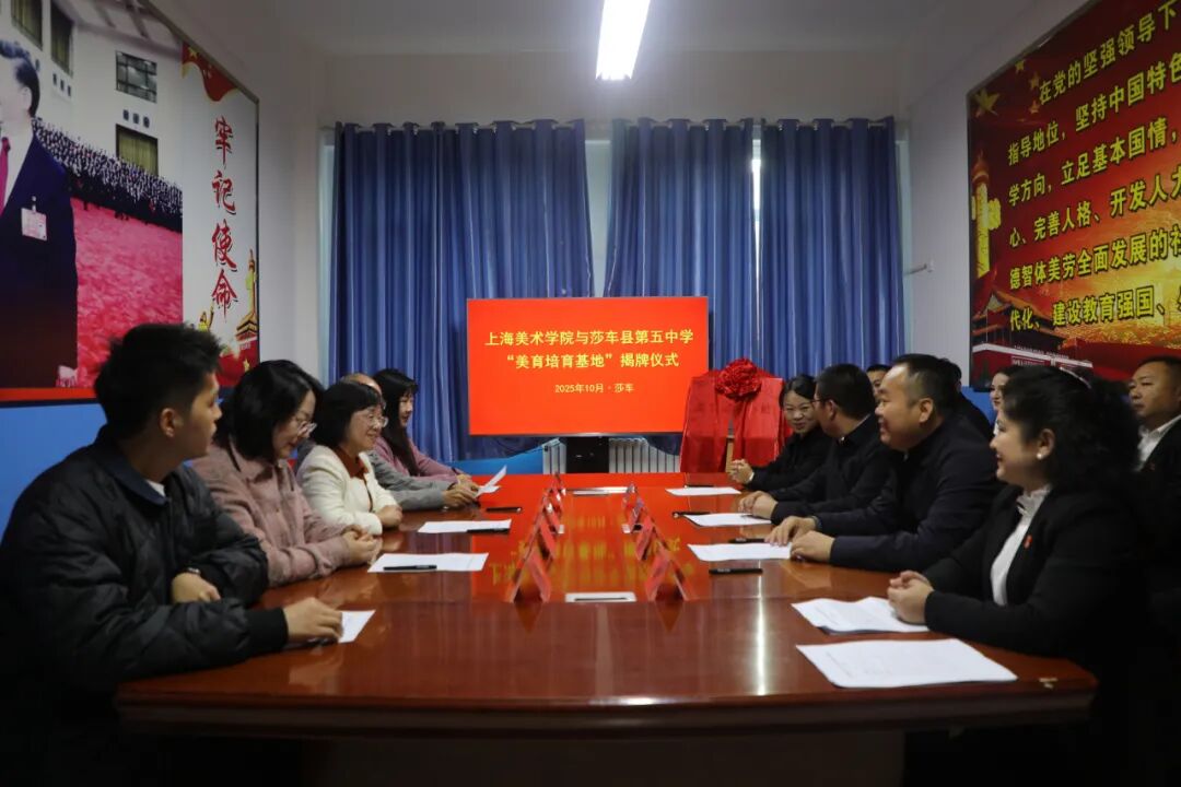 儀式上,上海美術(shù)學院負責人與莎車縣相關(guān)領(lǐng)導(dǎo)共同為“美育培育基地”揭牌。雙方表示,將加快推進美育課程合作,確?;刭Y源切實惠及廣大師生。