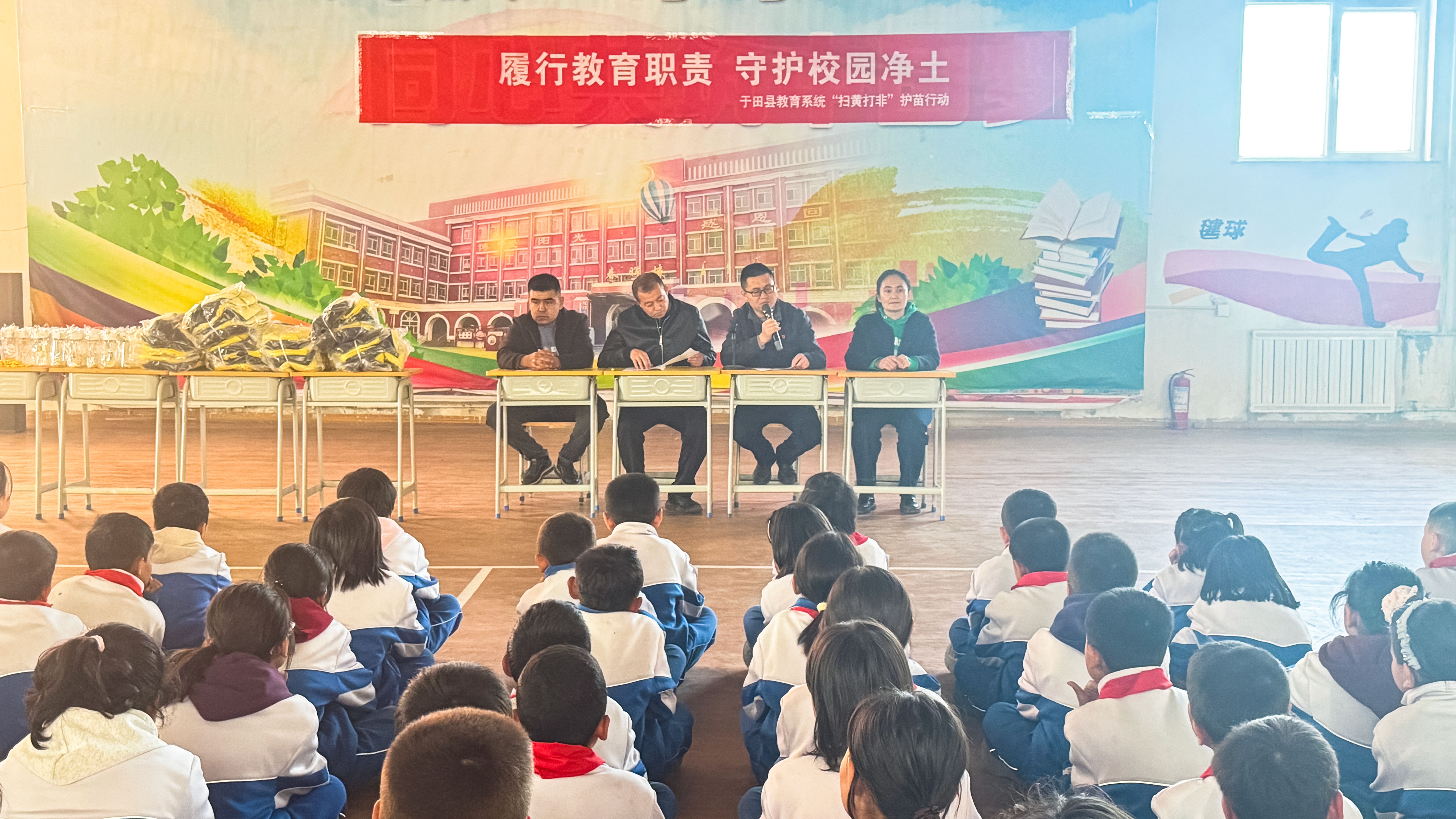 為積極響應(yīng)國家“掃黃打非”工作部署,落實于田縣委宣傳部關(guān)于凈化文化環(huán)境的工作要求,近日,于田縣教育系統(tǒng)在第二中學(xué)舉辦“掃黃打非?護苗成長”主題宣傳活動。于田縣教育局安全科工作人員、第二中學(xué)校領(lǐng)導(dǎo)及1000余名師生代表齊聚校園體育館,共同啟動校園文化環(huán)境凈化專項行動。
