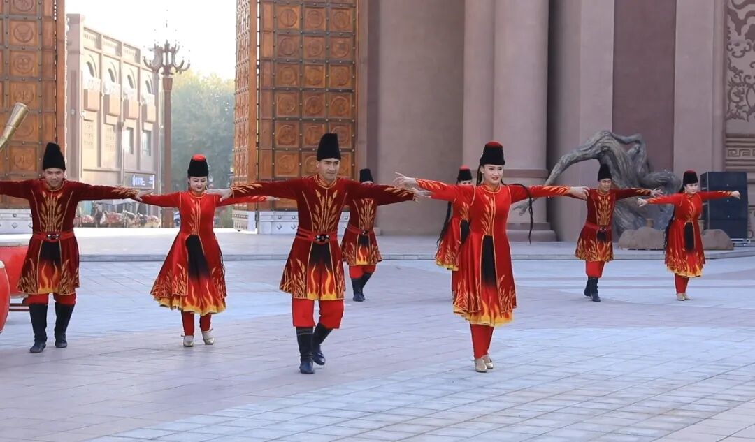儀式現(xiàn)場(chǎng),身著色彩艷麗刀郎服飾的演員們率先登場(chǎng),手鼓敲擊出明快的節(jié)奏,熱瓦普奏響悠揚(yáng)的旋律,粗狂豪邁的刀郎麥西熱甫舞蹈隨即展開。演員們時(shí)而舒展雙臂模擬胡楊搖曳,時(shí)而踏步轉(zhuǎn)圈再現(xiàn)田間勞作場(chǎng)景,生動(dòng)的演繹讓現(xiàn)場(chǎng)氣氛迅速升溫。游客們紛紛舉起手機(jī)記錄精彩瞬間,生怕錯(cuò)過任何一個(gè)文化亮點(diǎn)。