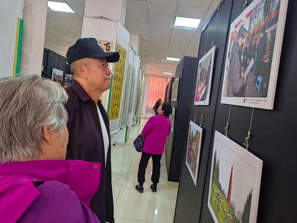 展廳內(nèi),墨香與光影交織成詩意畫卷。300余幅離退休干部創(chuàng)作的書畫攝影作品靜靜陳列,每一幅都藏著故事、裹著深情:或細(xì)繪玉溪的生靈共舞圖景,讓生態(tài)和諧隨畫卷沁潤心田;或輕吟玉溪湖山秀色詩篇,讓絕世美景隨文墨縈繞腦海;或描繪玉溪民族團(tuán)結(jié)畫卷,定格城鄉(xiāng)變遷的鮮活瞬間;或訴說玉溪千年文脈故事,讓厚重底蘊(yùn)隨畫面滋養(yǎng)靈魂;或記錄銀發(fā)志愿者在服務(wù)中奉獻(xiàn)的身影,彰顯“老驥伏櫪”的擔(dān)當(dāng)風(fēng)采。字里行間、幀幀畫面,既展現(xiàn)了玉溪改革發(fā)展的新成就、生態(tài)文明的新面貌,更飽含著老干部對黨和國家的赤誠熱愛和殷切期盼。老干部們?nèi)齼蓛神v足觀賞,時而輕聲交流創(chuàng)作心得,時而對著熟悉的畫面回憶往昔,眼神里滿是欣慰與自豪。這場精神文化盛宴將持續(xù)至11月7日,讓溫暖與感動久久延續(xù)。