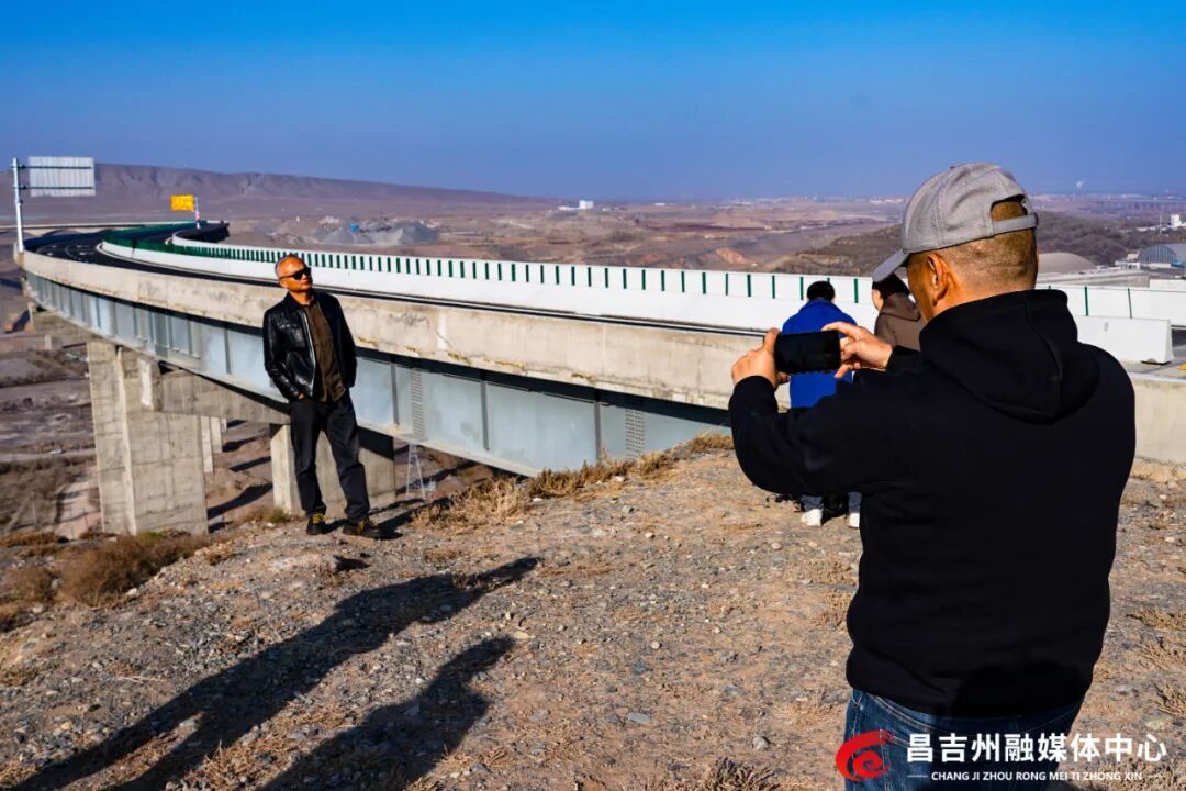 圖為頭屯河連接線特大橋通車吸引不少烏昌兩地市民來(lái)打卡拍照。常誼誼攝