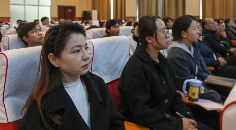 宣講中,成員們緊緊圍繞鑄牢中華民族共同體意識這一主線,以質(zhì)樸的語言、飽滿的情感,深情講述了發(fā)生在我們身邊的一個個真實故事——各民族兄弟姐妹手足相親、守望相助,在共同奮斗中結(jié)下深厚情誼。這些事跡生動展現(xiàn)了民族團結(jié)進步模范們信念堅定、無私奉獻、心系群眾、維護團結(jié)的崇高風(fēng)范,繪就了一幅幅各族群眾血脈相連、甘苦與共、團結(jié)奮進的動人畫卷?,F(xiàn)場氣氛莊重而熱烈,宣講內(nèi)容引發(fā)聽眾的強烈共鳴,掌聲不斷。