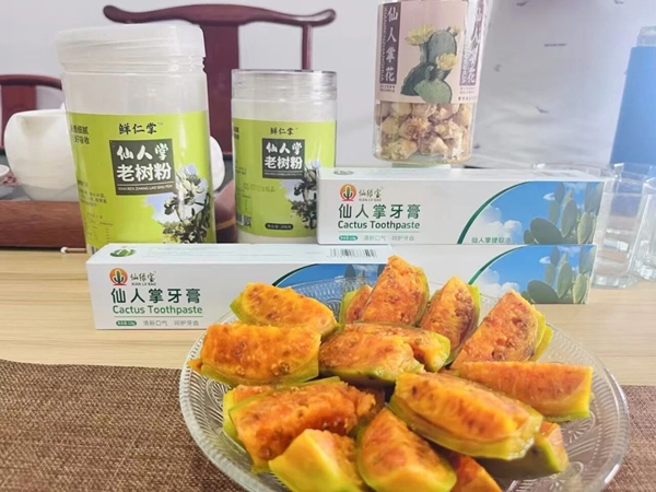 全株利用多元開發(fā),產(chǎn)業(yè)鏈條持續(xù)延伸。獨(dú)田鄉(xiāng)的仙人掌產(chǎn)業(yè)并非局限于鮮果種植,而是構(gòu)建起“全株利用、多元開發(fā)”的產(chǎn)品體系,讓仙人掌的每一部分都發(fā)揮經(jīng)濟(jì)價(jià)值。核心產(chǎn)品是美味營養(yǎng)的仙人果,作為主打產(chǎn)品,仙人掌果實(shí)口感清甜、營養(yǎng)豐富,富含鈣、鎂、鉀、鐵等多種礦物質(zhì),既是天然健康的水果,也可加工成果汁、果干等產(chǎn)品,市場認(rèn)可度高。高產(chǎn)期僅果實(shí)一項(xiàng),1500畝基地收益就將不低于1000萬元,成為產(chǎn)業(yè)核心盈利點(diǎn)。此外,仙人掌葉片經(jīng)過深加工,可制成啤酒、面條、老根粉、飼料等民生產(chǎn)品,同時(shí)依托其藥用和美容價(jià)值,進(jìn)一步開發(fā)出牙膏等日化產(chǎn)品,實(shí)現(xiàn)“從田間到貨架”的全鏈條開發(fā)。目前,各類加工產(chǎn)品已逐步推向市場,有效提升了產(chǎn)業(yè)附加值,讓仙人掌產(chǎn)業(yè)從“賣鮮果”向“賣產(chǎn)品”轉(zhuǎn)型。