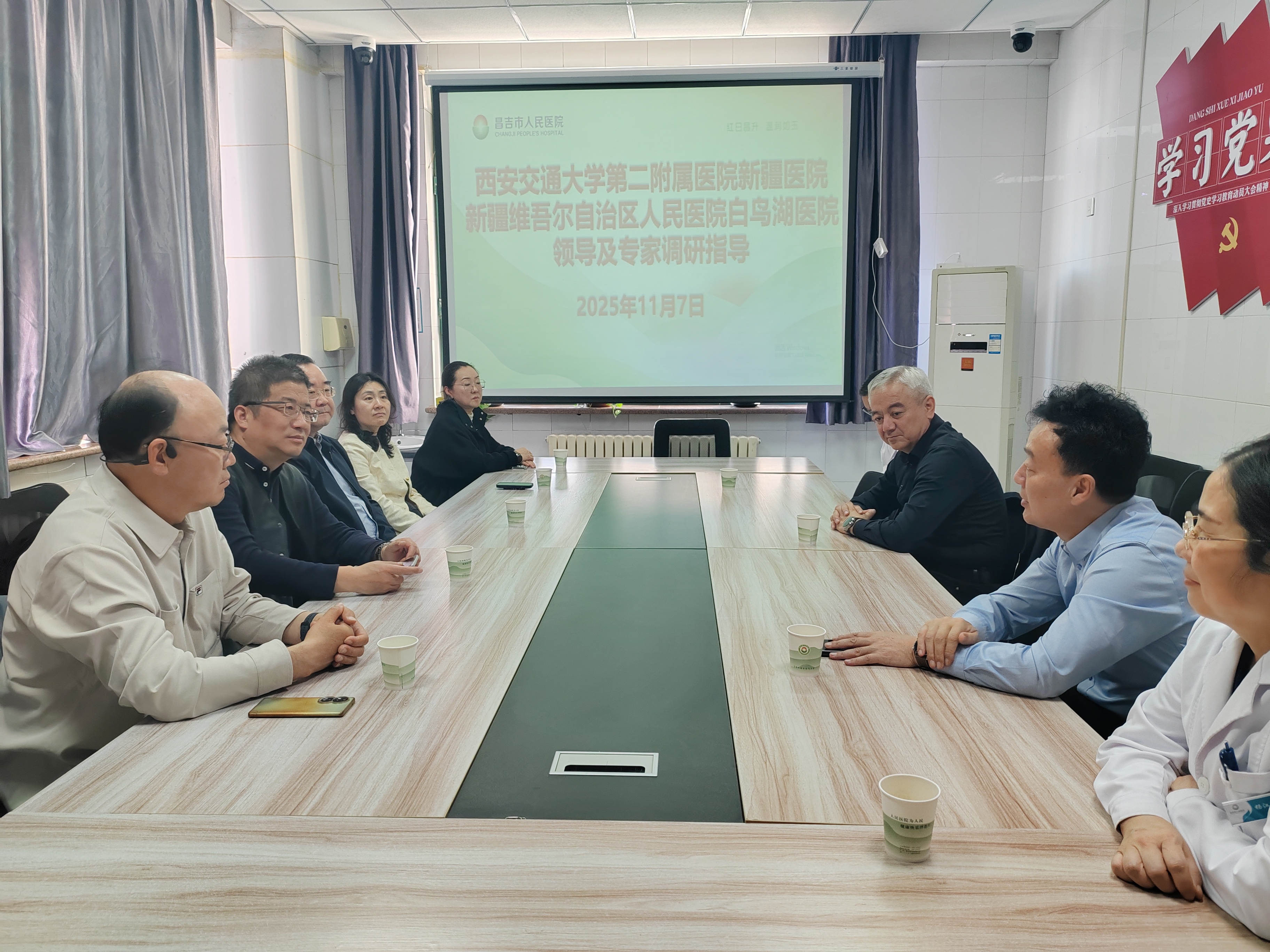 近日,昌吉市人民醫(yī)院黨委委員、副院長朱聯(lián)周在昌吉州人民醫(yī)院與西安交通大學第二附屬醫(yī)院新疆醫(yī)院、自治區(qū)人民醫(yī)院白鳥湖醫(yī)院簽訂了醫(yī)聯(lián)體協(xié)議,正式建立了醫(yī)聯(lián)體協(xié)作關(guān)系。隨后,西安交通大學第二附屬醫(yī)院(自治區(qū)人民醫(yī)院白鳥湖醫(yī)院)黨委委員、副院長牛靈,帶領呼吸與危重癥醫(yī)學科主任陳穎、胸外科副主任張晉(西安交大二附院駐疆專家)、消化內(nèi)科副主任萬曉龍(西安交大二附院駐疆專家)、黨辦聯(lián)絡員喬君暉一行5人蒞臨昌吉市人民醫(yī)院交流指導。