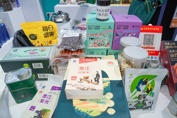 展區(qū)內(nèi),墨江特色農(nóng)產(chǎn)品憑借綠色生態(tài)的品質(zhì)、鮮明的地域特色和深厚的文化底蘊(yùn),贏得了參展嘉賓與觀眾的廣泛關(guān)注。作為國家地理標(biāo)志產(chǎn)品,墨江紫米孕育于哀牢山余脈的哈尼梯田,汲取高原沃土與純凈山水的滋養(yǎng),顆粒飽滿、營養(yǎng)豐富;北回歸線上鳳凰山核心產(chǎn)區(qū)淬煉的“水之靈”“鳳凰窩”等普洱茶,香氣醇厚、韻味悠長;三江五河潤澤而成的“滇墨山豬”系列熟食、雙胞豆咖啡等特色產(chǎn)品,全方位展現(xiàn)了“哈尼之鄉(xiāng)、回歸之城、雙胞之家”的獨(dú)特生態(tài)稟賦與產(chǎn)業(yè)特色,彰顯了云南邊疆民族地區(qū)產(chǎn)業(yè)發(fā)展的堅(jiān)實(shí)基礎(chǔ)。