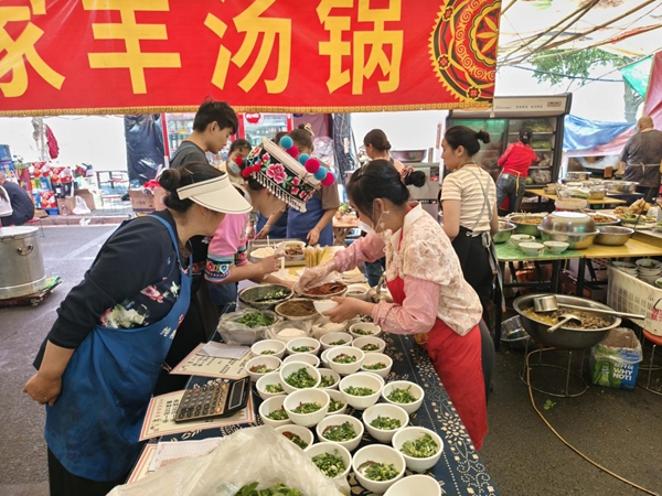 羊湯鍋的火爆,不僅是味蕾的狂歡,更是牟定人對傳統(tǒng)文化的深情守望。在節(jié)會現(xiàn)場,不少攤主身著彝族服飾,用最樸實的方式傳遞著對家鄉(xiāng)美食的自豪。
