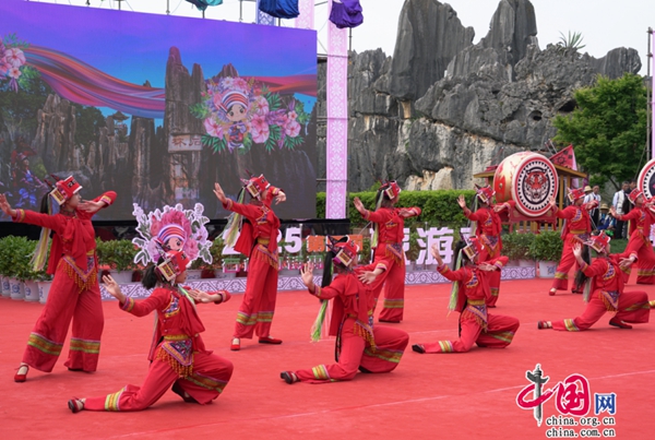 開(kāi)幕式上,當(dāng)晨光灑向喀斯特石峰,阿詩(shī)瑪?shù)母杪暣┩竷蓛|年時(shí)光,在石林間悠揚(yáng)回蕩。伴隨彩煙騰空與舞獅歡騰,彝族原生態(tài)文化畫卷徐徐展開(kāi):非遺歌舞再現(xiàn)《阿詩(shī)瑪》;情景劇《我的阿叔阿嬸》等特色演出,生動(dòng)展現(xiàn)了當(dāng)?shù)厝罕姷纳a(chǎn)生活場(chǎng)景。壓軸歌舞《遠(yuǎn)方的客人請(qǐng)您留下來(lái)》點(diǎn)燃全場(chǎng)熱情,將石林人“以歌為請(qǐng)、以舞為柬”的待客之道鐫刻進(jìn)每位來(lái)賓的記憶。(王建平)