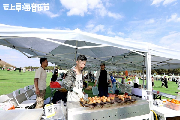 此外,“五一”期間,尋甸北大營(yíng)云上草海音樂(lè)節(jié)的專屬市集同樣熱鬧非凡。金黃酥脆的炸洋芋、美味爽口的涼粉涼米線、極具當(dāng)?shù)靥厣目九H獯⒗徖忞u等,讓人垂涎欲滴。創(chuàng)意好物區(qū)琳瑯滿目的手工藝品、文創(chuàng)周邊令人目不暇接。扎染、漆扇、掐絲琺瑯等傳統(tǒng)工藝匯聚一堂,每一件都承載著創(chuàng)作者的巧思與熱情。許多游客穿梭其中,精心挑選獨(dú)一無(wú)二的紀(jì)念品,將音樂(lè)節(jié)的美好記憶永久留存。