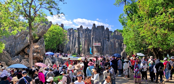 “五一”假期,以“相聚兩億年石林共赴阿詩瑪之約”為主題的第四屆石林阿詩瑪文化旅游季在石林風景區(qū)開幕,為游客帶來了一場融合自然奇觀與民族文化的沉浸式文旅體驗?;顒雍w非遺展演、美食市集等10余項特色內(nèi)容,吸引了眾多游客前來參與,有效推動了石林旅游事業(yè)的繁榮發(fā)展和文化賦能的進一步深化。
