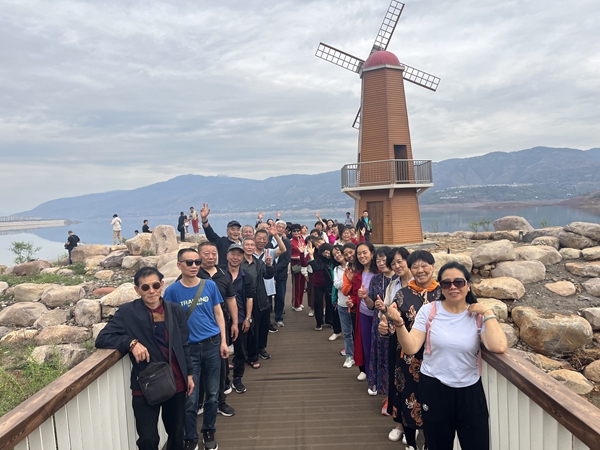 看三千尺凌波躍金,十萬里長河落影。來自曲靖市旅游團的游客楊福德介紹道:“我們這次來巧家旅游,感受到了巧家縣人民的熱情。我們覺得白鶴灘水電站非常讓人震撼,巧家的變化特別快,希望全國各地的人都來到巧家旅游觀光?!睋?jù)介紹,該旅游團于18日晚來到巧家,先到大寨鎮(zhèn)觀賞了白鶴灘水電站雄姿,然后走進巧家縣龍?zhí)豆珗@體驗清涼,接著到縣文化館領略了巧家歷史文化,再漫步在18公里濱江生態(tài)廊道,感受金沙江百里長湖的壯美,在兩天時間里一路觀光游玩,歡聲笑語不斷。