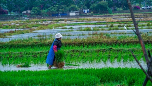 “綠遍山原白滿川,子規(guī)聲里雨如煙?!蹦嗤恋姆曳寂c秧苗的清香共同構(gòu)成和順夏天流動的田園牧歌。古鎮(zhèn)周邊的田園,廣袤的稻田猶如一面面巨大的鏡子,倒映著天空的湛藍(lán)與云朵的潔白。晨霧未散時(shí),農(nóng)人已戴著斗笠赤腳走進(jìn)水田。每一株秧苗都承載著對豐收的期許,在微風(fēng)中輕輕搖曳,與勞作的身影相互交織,構(gòu)成一幅天地人和的悠然畫卷。
