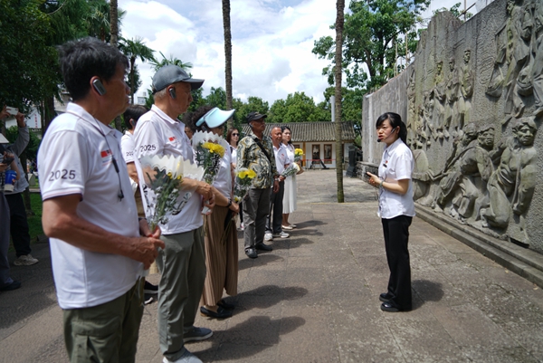 在龍陵松山抗戰(zhàn)遺址,南僑機(jī)工后代向抗戰(zhàn)英烈敬獻(xiàn)鮮花。在滇西抗戰(zhàn)遺址惠通橋,南僑機(jī)工后代們沿著滇緬公路緩緩前行,這條被譽為“抗戰(zhàn)生命線”的公路,曾見證3200余名南洋華僑機(jī)工響應(yīng)愛國號召,放棄海外優(yōu)渥生活,以血肉之軀保障日均1200噸物資運輸?shù)膲蚜覛v史。華僑互助會創(chuàng)辦人侯西反的孫女侯韋鎂輕撫橋欄感慨:“歷史不是遙遠(yuǎn)的傳說,而是先輩們用熱血澆筑的山河。”