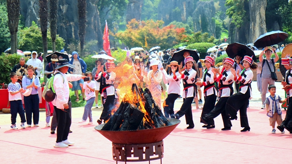 每日9:00-9:30,景區(qū)原檢票口將舉行傳統(tǒng)迎賓儀式,由大三弦、小三弦及細(xì)樂方陣組成的表演隊伍為游客獻(xiàn)上原生態(tài)民族表演。9:30起,巡游隊伍將沿石林湖至日月廣場進(jìn)行民族巡演。日月廣場將舉辦包括祭火儀式、文藝演出等在內(nèi)的多項活動,其中主火把點(diǎn)燃儀式將成為每日活動的高潮。