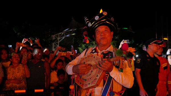 “每年火把節(jié)我都要來元謀人廣場看演出,今年的節(jié)目很精彩!還有祭火大典,畢摩吟誦的時(shí)候,我覺得特別震撼。來看表演的不僅有我們本地人,還有很多外地游客,大家手拉手跳左腳舞,作為一名元謀人,看著家鄉(xiāng)的火把節(jié)一年比一年紅火,感覺還是挺驕傲的?!弊鳛樵\本地人的周杰也和朋友來湊熱鬧。