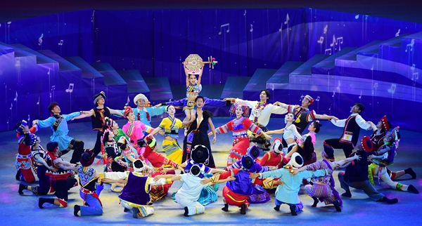 《溪匯萬(wàn)象》篇章以民族文化和玉溪特色為紐帶精彩上演,通過(guò)“多元藝術(shù)融合+自然共生詮釋”,繪就和諧共生的七彩畫(huà)卷。玉溪市江川若水童聲合唱團(tuán)帶來(lái)曲目《為你而來(lái)》,旋律溫婉深情、清澈純凈;《七彩云南》篇串聯(lián)了《幸福中國(guó)一起走》《有一種叫云南的生活》等歌曲,融合花燈戲腔與說(shuō)唱,展現(xiàn)云南的自然之美與人文活力;跨界融合合作舞臺(tái)《溪韻?太平有象》以非遺竹樂(lè)搭配“象靈”舞蹈,詮釋人與自然和諧共生的“碧玉清溪?象往之地”內(nèi)涵,將“和合共融”的愿景推向高潮。