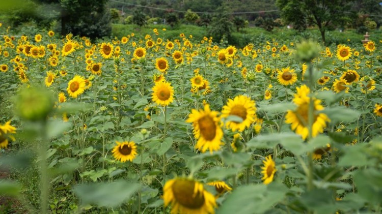 同期,楚雄州武定縣獅山鎮(zhèn)的向日葵花海也進(jìn)入盛開期,朵朵向日葵連成一片金色海洋。據(jù)了解,獅山鎮(zhèn)向日葵花海依托民族斗牛文化園建設(shè),在文化園前的空地種植,目前種植面積已達(dá)7畝。“除向日葵外,在春季也會(huì)組織村民種植油菜花,滿足游客賞花需求?!豹{山鎮(zhèn)宣傳委員李莉說,“獅山鎮(zhèn)也以花為媒,結(jié)合火把節(jié)、花山節(jié)等特色民族節(jié)日開展系列活動(dòng),讓游客在賞花的同時(shí)體驗(yàn)民族文化魅力。同時(shí)同步規(guī)劃建設(shè)露營草坪、涼亭等,進(jìn)一步提升游客游覽體驗(yàn)。”