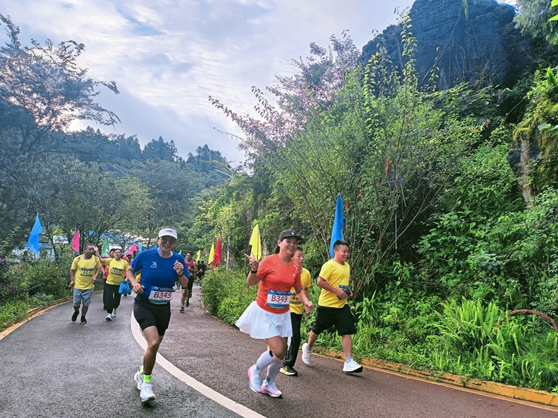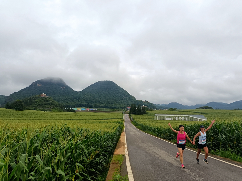 本次賽事以“秋之色”為主題,分為31公里個人挑戰(zhàn)賽和11公里歡樂家庭跑兩組,難度設(shè)計兼顧競技性與趣味性。賽事首次將賽道延伸至田間,放眼望去,玉米、小黃姜、萬壽菊等作物與連綿起伏的喀斯特峰嶺相映成趣,讓選手在奔跑中感受“峰嶺疊翠、原野鎏金”的獨特秋韻。
