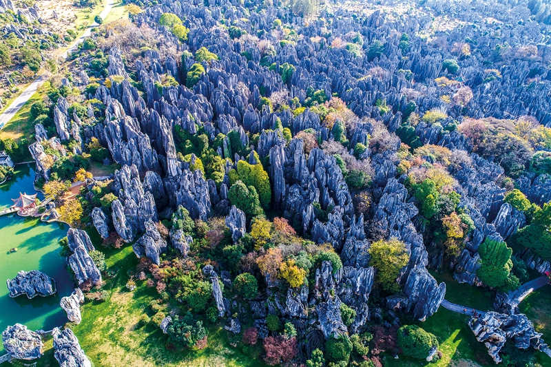 石林作為世界自然遺產(chǎn)地,擁有2.7億年的喀斯特地貌奇觀,奇峰石林、靜謐長湖、蒼翠圭山等自然景觀,構(gòu)成獨(dú)一無二的“地質(zhì)史詩”。同時(shí),這里是彝族撒尼文化的發(fā)源地,火把節(jié)、大三弦舞、撒尼刺繡等非遺傳承,為旅居增添了鮮活的人文底色。石林縣年平均氣溫16.8℃,無霜期長達(dá)263天;森林覆蓋率63.02%,是云南省最早獲得“中國天然氧吧”稱號(hào)的城市,這里的負(fù)氧離子常年保持在每立方厘米5000個(gè)以上。