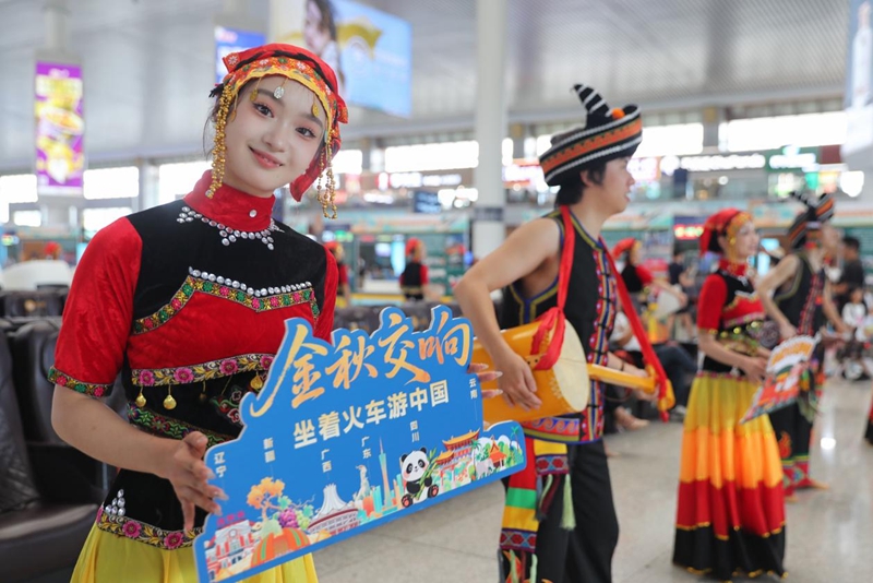 8月28日,“金秋交響 ?坐著火車游中國”大型旅游推介活動在昆明啟動?;顒蝇F(xiàn)場,國鐵昆明局?jǐn)y手國鐵沈陽局、廣州局、南寧局、成都局、烏魯木齊局及地方文旅部門,推出多樣秋季火車旅行精品線路、特色文旅項(xiàng)目,并發(fā)布覆蓋云南省近60家鐵路沿線A級景區(qū)的免票、折扣活動。