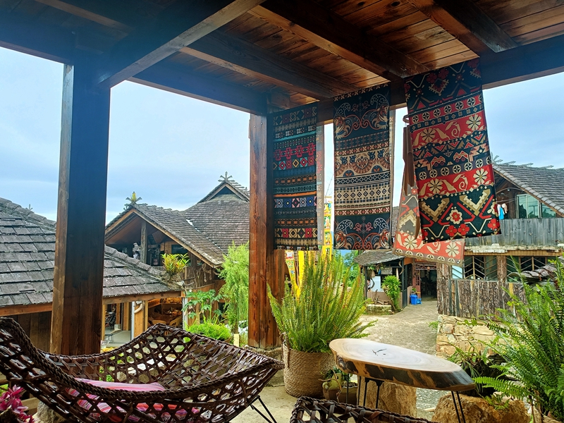 在野鴨塘河谷?景邁山店,干欄式木結(jié)構(gòu)傳統(tǒng)民居的古色與咖香交織。店長鄒宜恒介紹說,野鴨塘河谷?景邁山店是一間茶咖結(jié)合的新中式文化空間,今年6月入駐景邁山以來,每天可接待游客200左右人次。在這里,游客或小飲一杯景邁山的烤茶,或深吸一口焦香與玫瑰花香交織的咖啡的香氣,聆聽翁基古寨千年歲月的故事。