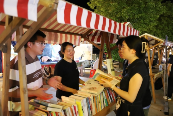 在今年的夜市里,一個堆滿書籍的攤位引得大家紛紛駐足。據(jù)洪藍社區(qū)工作人員介紹,只需花上5元即可成為終身會員,將社區(qū)農(nóng)家書屋的一本好書帶回家,閱讀完可以到社區(qū)更換其他書籍。“這個活動很好,平時我也比較喜歡看書,但是工作忙沒時間經(jīng)常去社區(qū)?,F(xiàn)在我可以將書籍帶回家,也能帶動身邊人一起,共同養(yǎng)成良好的閱讀習(xí)慣?!眮碜院樗{街道天生橋社區(qū)的姚女士說道。