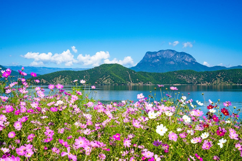 九月的瀘沽湖畔,格?;ㄓL盛開,與碧波萬頃的湖水交相輝映。9月16日,為期三天的麗江瀘沽湖摩梭人傳統(tǒng)節(jié)慶——轉(zhuǎn)山節(jié),迎來了主儀式活動。數(shù)千名當?shù)啬λ竺癖娕c海內(nèi)外游客齊聚格姆女神山下,共同參與這場融合了民俗、文化與民族團結(jié)的盛會。