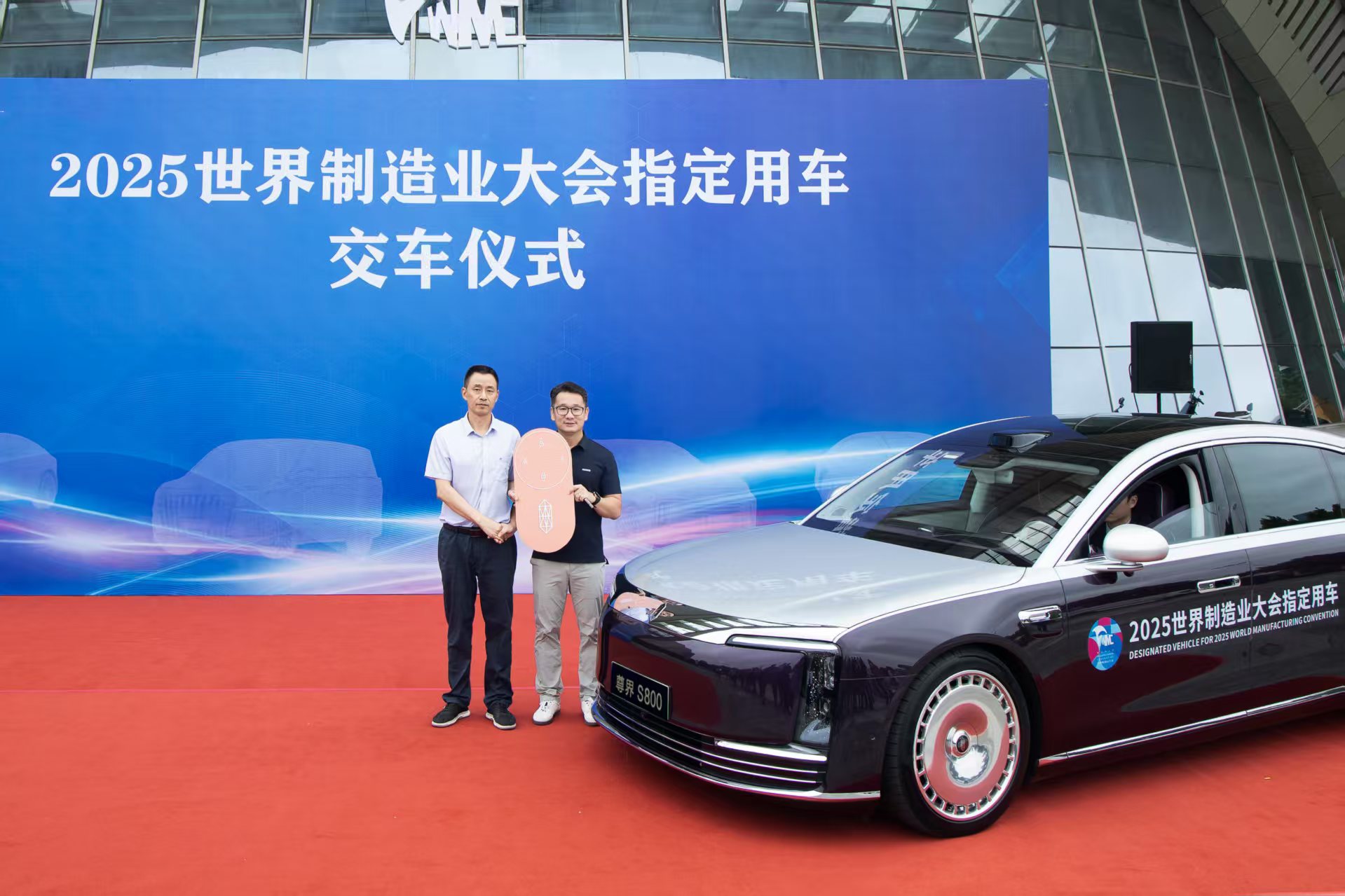 儀式現(xiàn)場,華為旗下尊界S800與智界系列車型作為大會官方指定用車閃亮登場,成為全場焦點。華為企業(yè)代表手持象征信任與深度合作的“車鑰匙”,正式交付給 2025世界制造業(yè)大會執(zhí)委會,此次交付的車輛包含 3輛尊界 S800與 8輛智界車型,將全面投入大會服務(wù)保障工作。