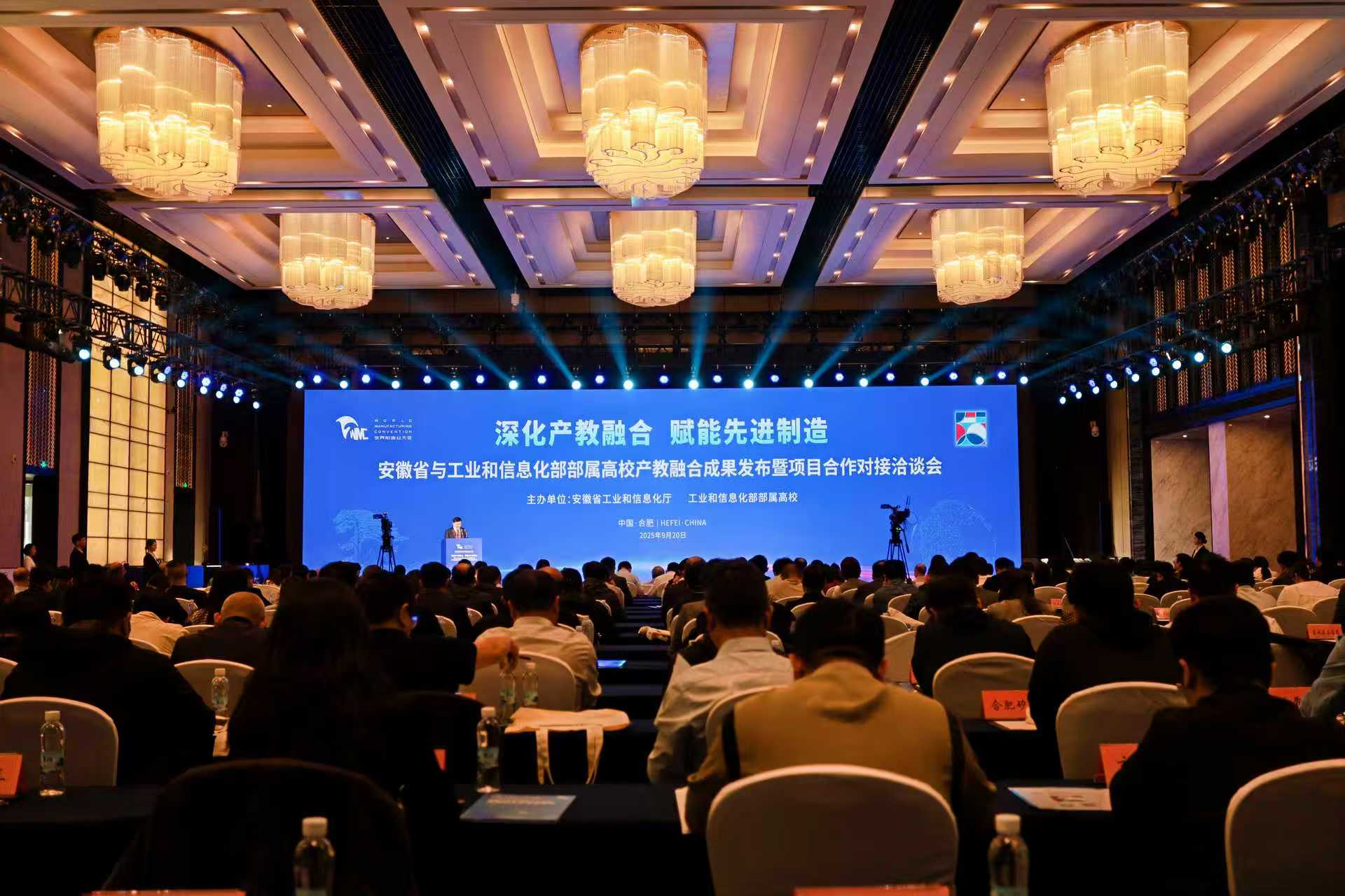 2025年9月20日下午,安徽省工業(yè)和信息化廳、工業(yè)和信息化部部屬7所高校共同舉辦安徽省與工業(yè)和信息化部部屬高校產(chǎn)教融合成果發(fā)布暨項(xiàng)目合作對(duì)接洽談會(huì)。這是連續(xù)第4年在世界制造業(yè)大會(huì)期間舉辦省部產(chǎn)教融合對(duì)接活動(dòng)。