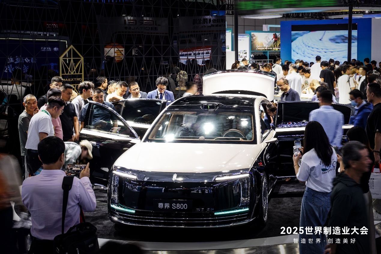 大會外展區(qū)域,尊界S800驚艷亮相排面拉滿,未來感十足的設(shè)計語言與與生俱來的豪華氣場相得益彰,瞬間成為全場視覺核心。流線型車身勾勒出優(yōu)雅身姿,星輝點綴的細節(jié)彰顯匠心,每一處設(shè)計都詮釋著“超豪華”的定義。