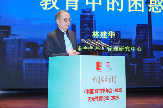 北京大學(xué)原校長(zhǎng)、北京大學(xué)未來教育管理研究中心主任林建華作題為《教育中的困惑》的主題演講。他指出教育具私人與公共雙重屬性,應(yīng)立足“學(xué)以成人”,打破學(xué)科與校園邊界,融入社會(huì),注重思維培養(yǎng)而非知識(shí)灌輸,以應(yīng)對(duì)AI時(shí)代的挑戰(zhàn)。