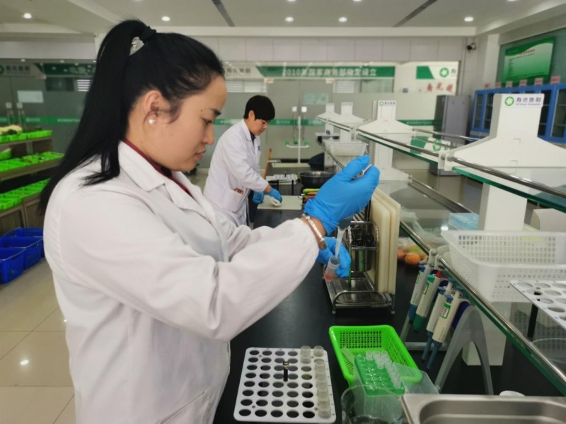 凌晨,豐收季的忙碌早早啟幕,一輛來自內(nèi)蒙古產(chǎn)區(qū)的南瓜貨車已??吭趬酃獾乩箝T口,等候入場。市場食安檢測人員隨機(jī)取樣送入食品安全檢測中心,經(jīng)信息備案和檢測合格后,這車南瓜即完成“身份認(rèn)證”并進(jìn)入園區(qū)。
