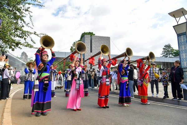 10月1日至8日,電影《阿詩(shī)瑪》的浪漫場(chǎng)景將在蓮花池真實(shí)上演。演員們身著撒尼服飾泛舟湖上,以歌傳情,將“阿詩(shī)瑪與阿黑哥對(duì)歌定情”的經(jīng)典片段化作游客觸手可及的沉浸式劇場(chǎng)。日月廣場(chǎng)上,彝族歌舞與游客聯(lián)歡交織,點(diǎn)燃每一位現(xiàn)場(chǎng)觀眾的熱情。
