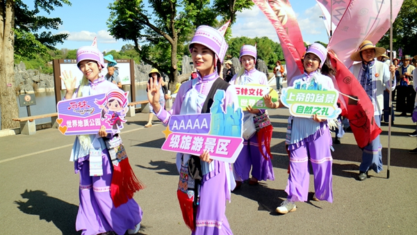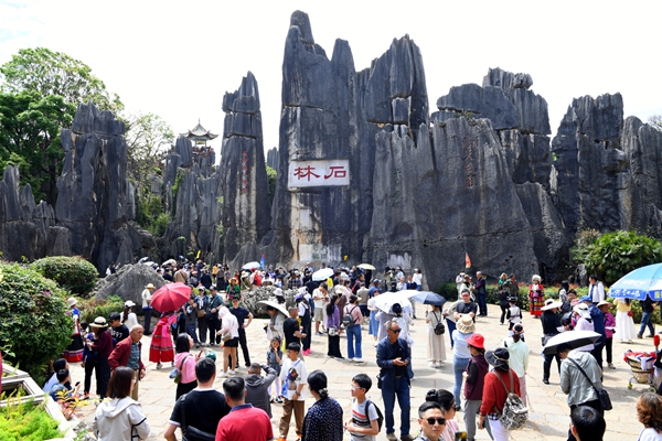 這個(gè)雙節(jié)假期,石林邀您左手?jǐn)埰嬗^,右手擁文化。在億萬(wàn)年前的“海底世界”漫游,于奇石間聆聽音樂、揮灑汗水、品味民俗、邂逅藝術(shù),感受自然與文化的激情碰撞。(王建平、趙國(guó)洪)
