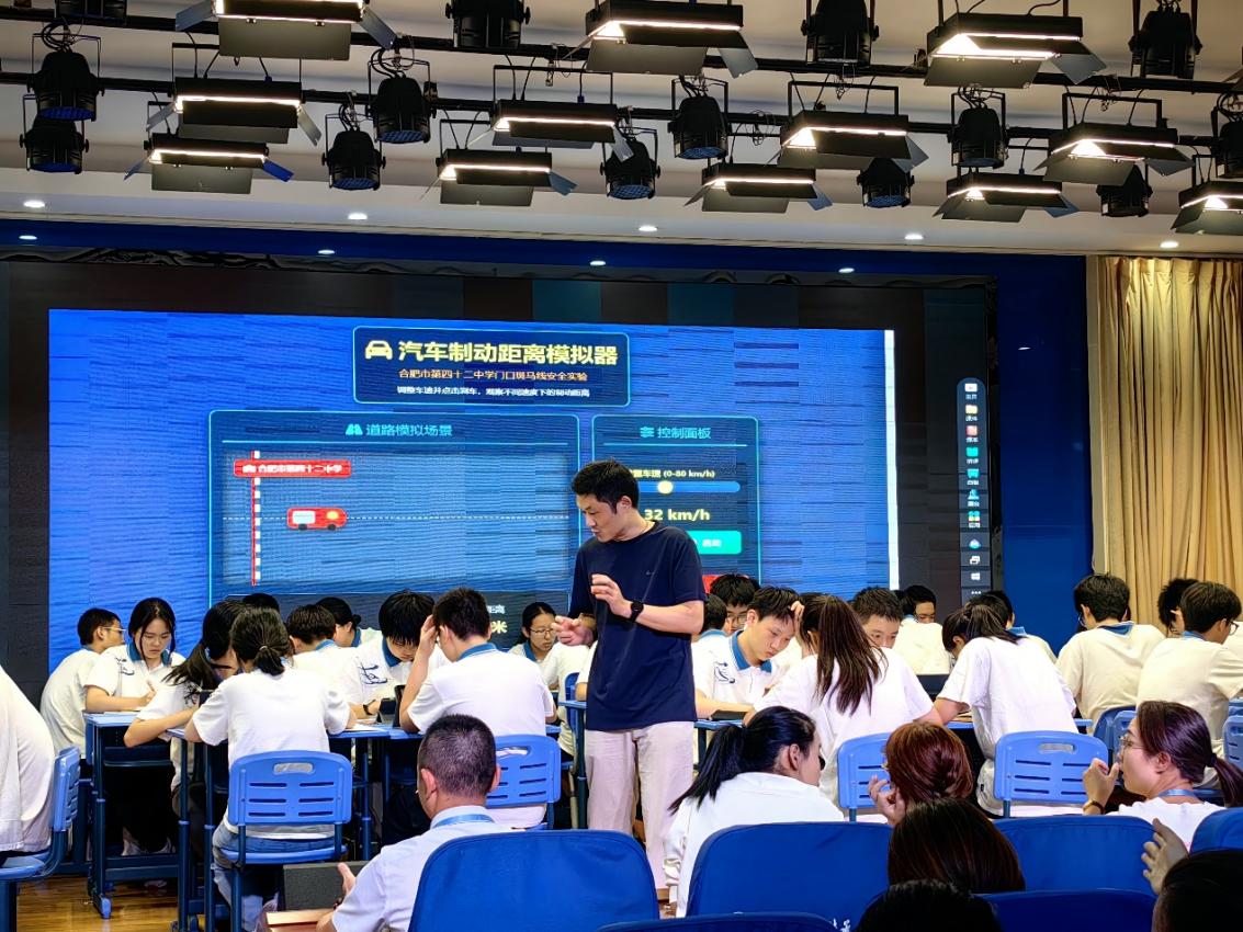 該校數(shù)學(xué)教師石磊,石磊名師工作室領(lǐng)銜人,開展展示課,聚焦“二次函數(shù)的應(yīng)用:汽車制動距離”,依托智慧平板構(gòu)建互動實(shí)驗(yàn)場景,帶領(lǐng)學(xué)生通過數(shù)據(jù)探究,完成生活實(shí)際問題的解決與驗(yàn)證。
