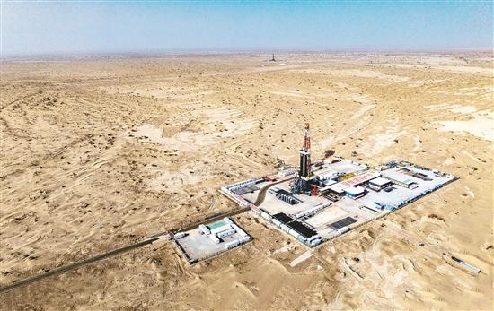 我國首口萬米科探井——中國石油深地塔科1井在新疆塔克拉瑪干沙漠地下萬米發(fā)現(xiàn)油氣顯示。圖為深地塔科1井。呂殿杰 攝