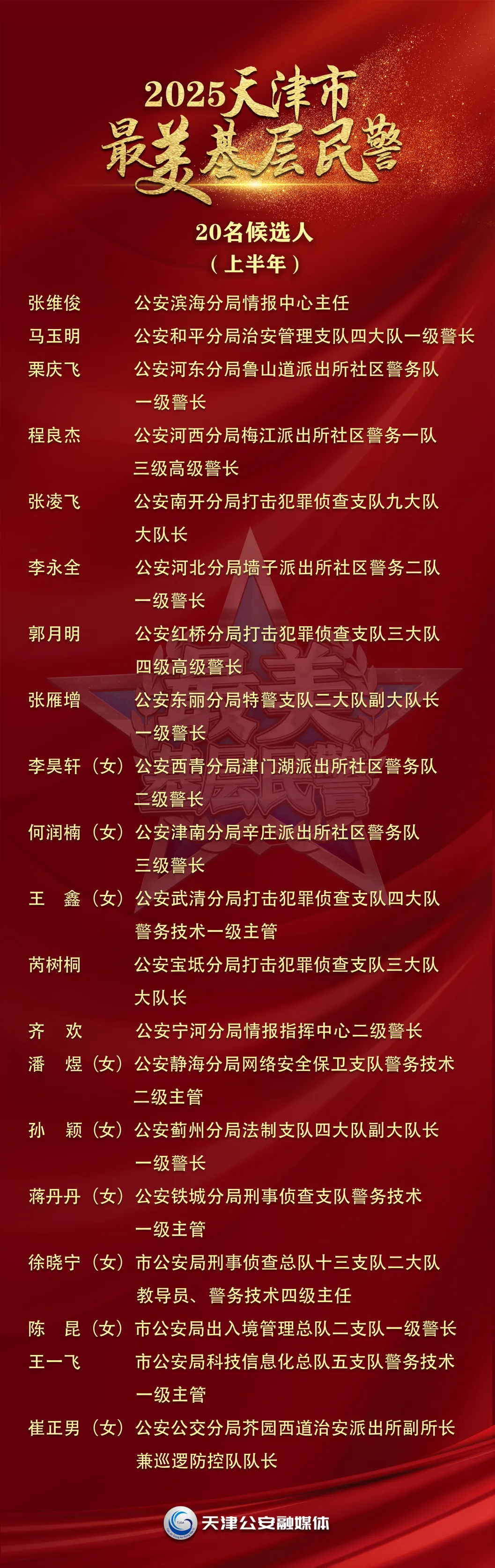 陽光下的守護(hù)丨2025天津市“最美基層民警”年終總評候選人(上半年)揭曉!