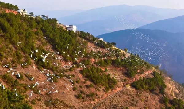 每年從白露到立冬,南華縣馬街鎮(zhèn)境內(nèi)大中山的千年鳥(niǎo)道“熱鬧非凡”,成千上萬(wàn)只候鳥(niǎo)在此停留覓食,補(bǔ)充體力后繼續(xù)南遷,形成萬(wàn)鳥(niǎo)齊飛的奇觀景象。