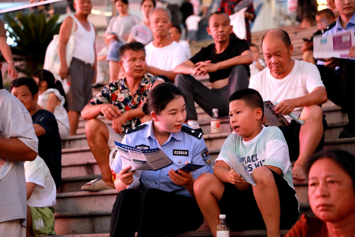 暮色輕吻中南門歷史文化旅游區(qū)的青石板,露天電影的幕布在漸濃的夜色里舒展,楊女士牽著孩子的手,指尖拂過剛領到的《中華人民共和國未成年人保護法》宣傳冊,晚風里飄著巷弄的飯菜香,也裹著反詐短片的輕聲叮囑。這是貴州省銅仁市“法治銅仁?平安相伴”普法宣傳活動的尋常一幕,卻寫滿了法治與煙火氣的溫柔共鳴。