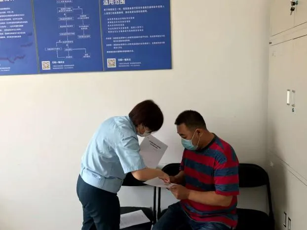 圖:朝陽區(qū)道路交通事故社會救助基金管理辦公室工作人員辦理救助基金申請