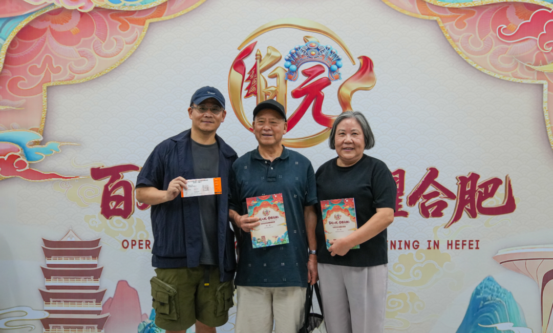 不同的年齡,卻擁有一樣的熱情。74歲的熊奶奶與老伴、兒子一家三口來到現(xiàn)場。每天晚上都要打開電視戲曲頻道的她,近期加入了線下的“追戲大軍”:“年輕時候就喜歡戲曲,這次這么多名家都來到合肥。我們不用隔著屏幕,就這么近距離地觀看演出,太開心、太激動了!”