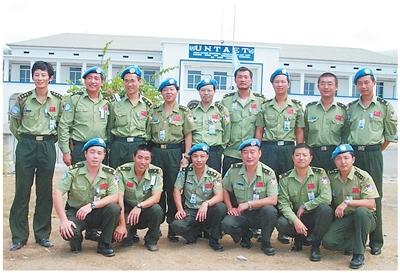 中國首批15名維和警察在東帝汶總統(tǒng)府前合影留念,后排右三為徐志達(dá)。