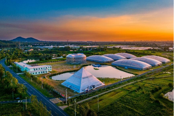 長(zhǎng)古旅游公路沿線煥發(fā)活力的,遠(yuǎn)不止于文旅風(fēng)光。一座座現(xiàn)代化農(nóng)業(yè)園區(qū)如雨后春筍般涌現(xiàn),成為鄉(xiāng)村振興的亮麗風(fēng)景。位于橋頭集鎮(zhèn)的安徽現(xiàn)代霧耕農(nóng)業(yè)科技示范園內(nèi),一座座造型酷似“金字塔”“鳥巢”“土樓”的智能溫控大棚蔚為壯觀,在藍(lán)天映襯下充滿科技感。陽(yáng)光灑落在鋼結(jié)構(gòu)溫室上,折射出斑斕光彩,令人仿佛步入科幻世界中的“未來(lái)農(nóng)場(chǎng)”。