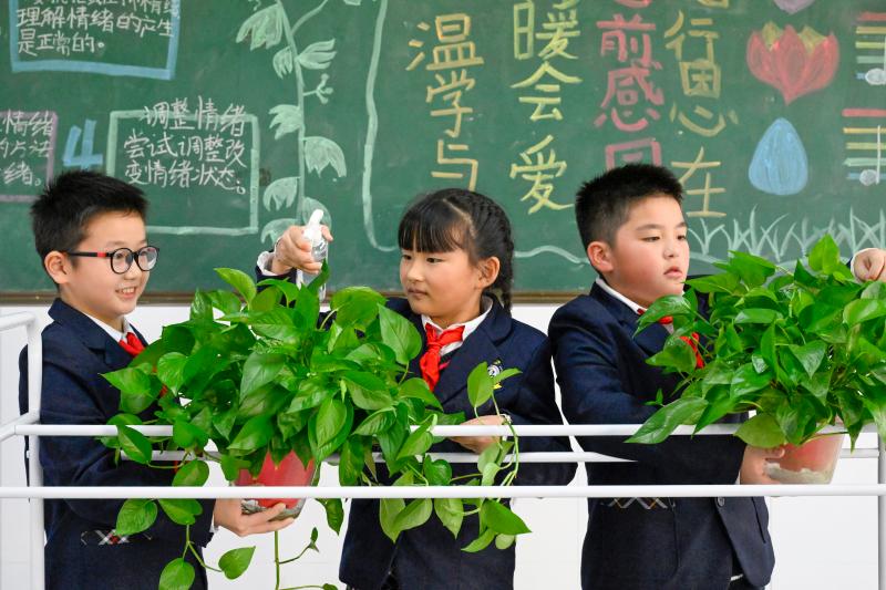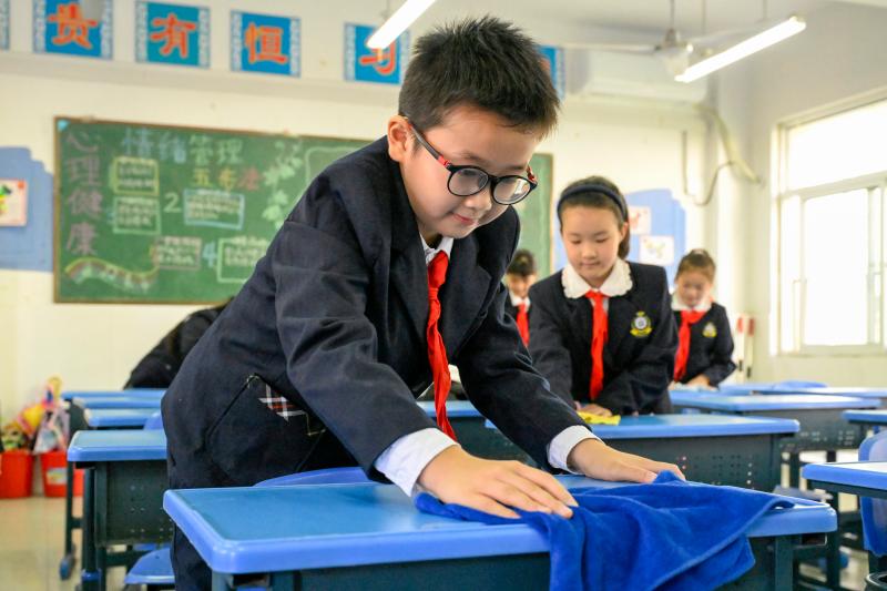 10月22日,在廬陽區(qū)林店街道南門小學(xué)恒盛皇家花園校區(qū),小學(xué)生正在裝扮教室,打掃校園衛(wèi)生。今年以來,該校通過紅領(lǐng)巾志愿服務(wù)積分形式,鼓勵(lì)學(xué)生積極參與到班級(jí)服務(wù)中來,旨在引導(dǎo)孩子們學(xué)會(huì)奉獻(xiàn)的意義和責(zé)任擔(dān)當(dāng)?shù)膬?nèi)涵,為校園的和諧與美好貢獻(xiàn)自己的力量。(廬陽區(qū)人民政府)