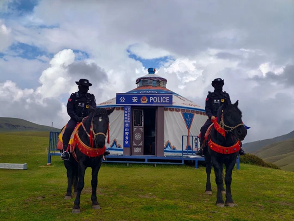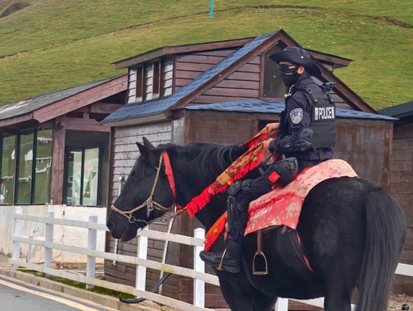 從服務(wù)群眾的“最后一公里”到“零距離”,馬鞍載著平安一步步走來(lái)?!斑@里沒(méi)有平坦的公路,我們就跟著牧道走,這里沒(méi)有便捷的補(bǔ)給,我們就把水壺、干糧、應(yīng)急救援物資掛在馬鞍上。”這是騎警隊(duì)隊(duì)員常說(shuō)的一句話,也是他們服務(wù)群眾的真實(shí)寫(xiě)照。在大海草山,騎警隊(duì)的馬匹不僅是巡邏的工具,更是載著服務(wù)與溫暖的“移動(dòng)平臺(tái)”,把“遠(yuǎn)在天邊”的警務(wù)服務(wù),變成了“近在眼前”的貼心幫助。如今,騎警隊(duì)員在旅游旺季騎著馬匹走進(jìn)牧區(qū)、走近游客身邊,發(fā)放安全提醒,講解注意事項(xiàng),不僅讓每一次的處警更加快速便捷,更讓游客在求助時(shí)能第一時(shí)間趕到身邊。
