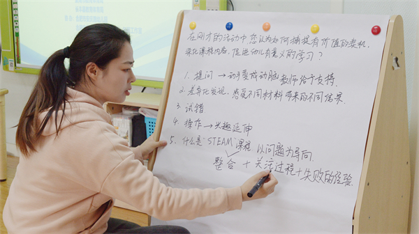 經(jīng)驗分享環(huán)節(jié),四位幼教工作者分別從STEAM教育理念、“活教育”視角下的食育課程、課程審議機制、點彩藝術(shù)融入日常課程等方面,介紹了各自的實踐成果。