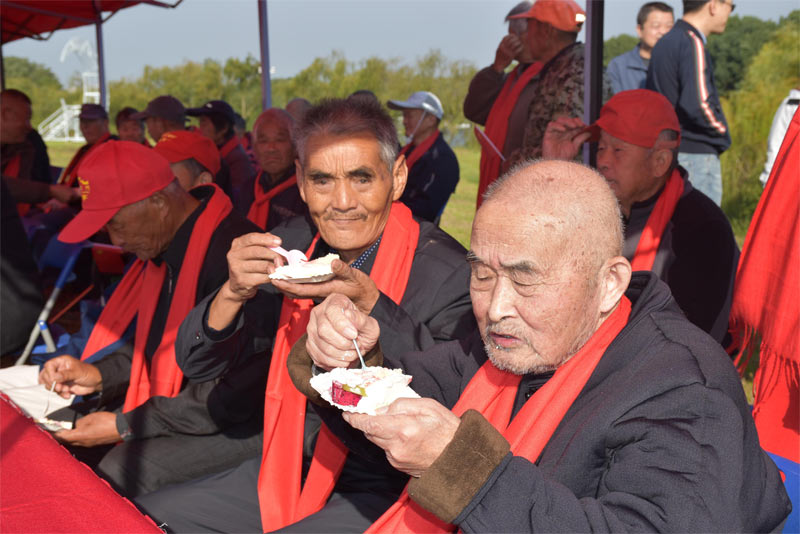 活動(dòng)現(xiàn)場(chǎng),當(dāng)老人代表趙和敏、吳福泉、孔德炎、楊教明和四名老退伍兵代表梅道章、史見(jiàn)長(zhǎng)、丁壽永、孔維杰等人登上主席臺(tái),鮮美的蛋糕推上臺(tái)前時(shí),幾乎所有的手機(jī)、相機(jī)、流動(dòng)的影像紛紛閃動(dòng),在美麗的白馬山下,被定格在時(shí)光里,讓秋日的白馬山體育公園更加迷人芬芳。