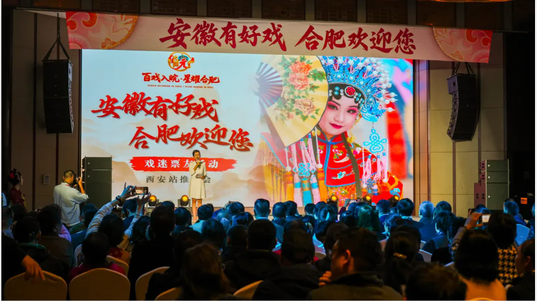 29日上午,“百戲入皖 星耀合肥”戲曲主題活動(dòng)西安站推介會(huì)正式開幕。本次西安站是繼蘇州站、太原站后的第三場主題推介活動(dòng)?,F(xiàn)場為了進(jìn)一步展現(xiàn)此次戲曲主題活動(dòng)的精彩亮點(diǎn),特意邀請組織秦腔、黃梅戲、廬劇的多位演員上臺(tái),共同為嘉賓展演經(jīng)典戲曲名段。同時(shí)設(shè)置文創(chuàng)市集,展現(xiàn)合肥文旅好物。